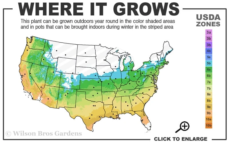 Note:Â Â For our customers who live and garden north of USDA Plant Hardiness Zone 6a, where this Pitcher Plant variety is not reliably winter hardy, you’ll be happy to know it can be grown in containers that can be brought indoors during winter and placed back outside when temperatures warm up in spring.