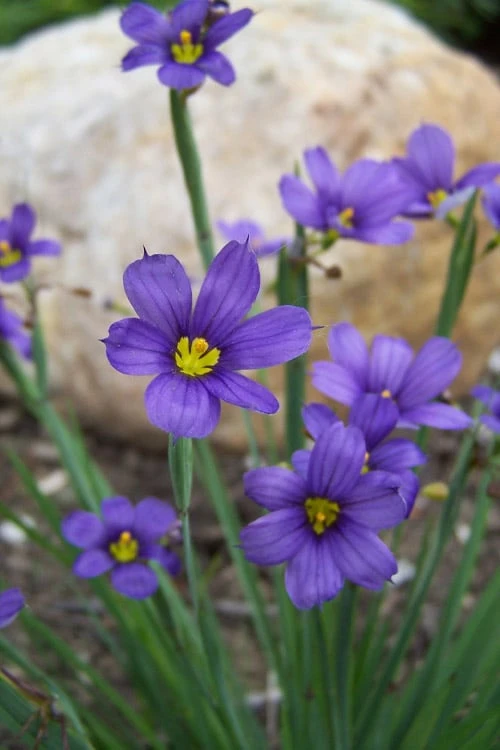 Growing 6 to 10 inches tall and spreading slowly to 8 to 12 inches or more, Lucerne Blue-Eyed Grass is a perfect choice for use as an accent in small garden spaces and containers or in groupings or as a border edger along garden beds or paths and walkways. It looks great around rocks and boulders around the garden pond. A fine addition to bog gardens, ornamental grass gardens and blue theme gardens.